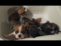Litter of frenchton puppies. Hybrid designer breed between a French bulldog and a Boston terrier.